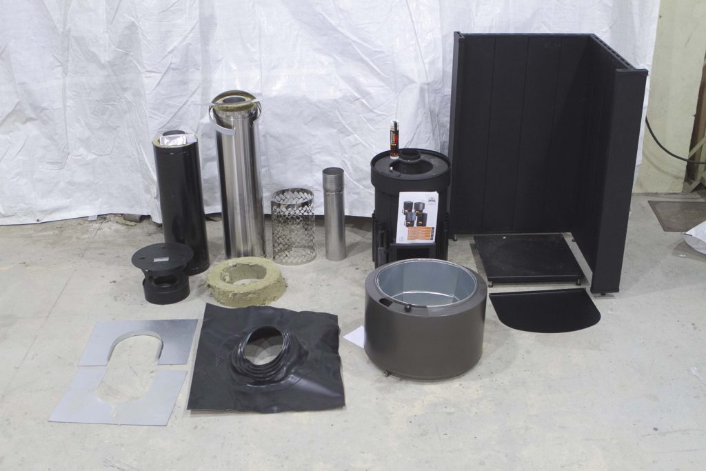Seinad 60 mm freespruss. Akendel ja ustel pakettklaasid. Leiliruumi lagi, lava, pingid ja seljatoed mustast lepast või haavast. Laed soojustatud kilpidest (60 mm). Leili- ja riietusruumi põrand: 28 mm kuuse valmiskilbid, viimistletud. Komplektis puuküttega keris, veepaak 30 l, kaitseekraanid ja isoleeritud korsten. Katusekate kärgruberoid või rullpapp.